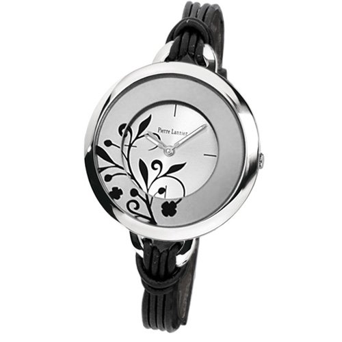 Pierre Lannier - 068H723 - Montre Femme - Quartz Analogique - Cadran Argent - Bracelet Cuir Noir Feature