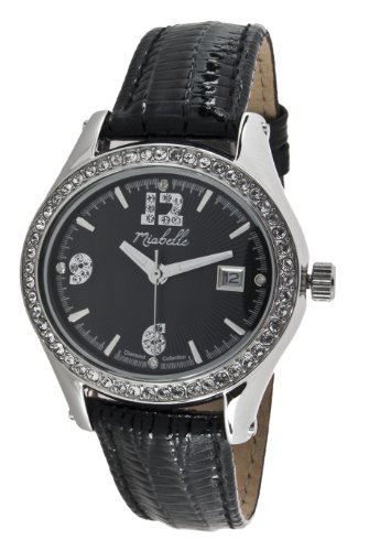 Buy Miabelle - 12-012W-B - Montre femme - Quartz - Analogique - Cadran Argent - 76 éléments Swarovski et 4 diamants - Bracelet Cuir Noir - Dateur